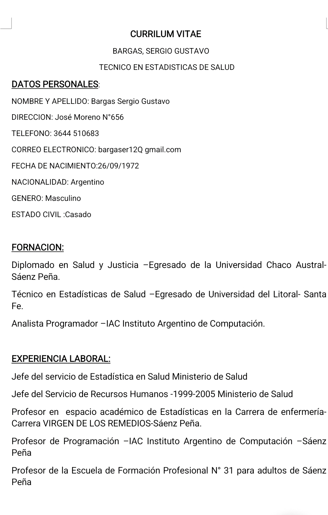 Bargas, Sergio Gustavo